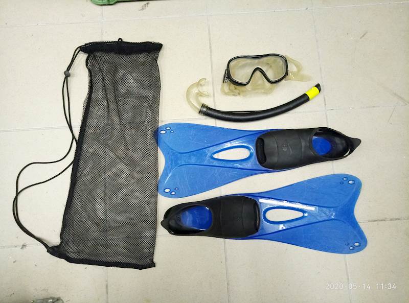 Již používaná sada movitých věcí - plavecké brýle, šnorchl a ploutve vel. 39 - 40.